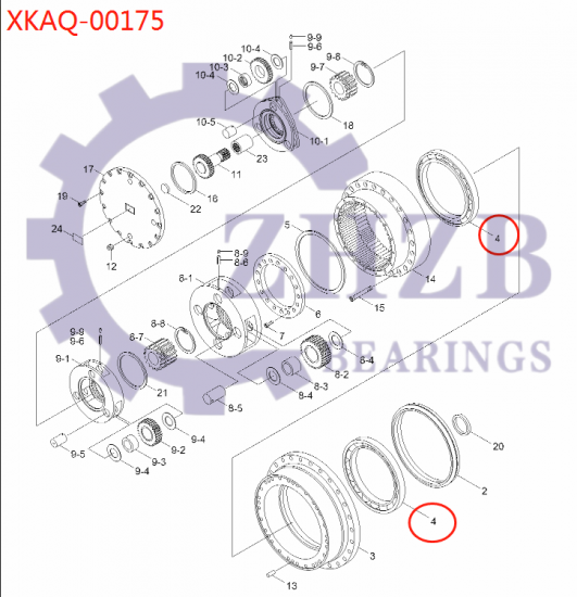 Caixa de engrenagens de viagem de escavadeira Hyundai XKAQ-00175 XKAQ00175